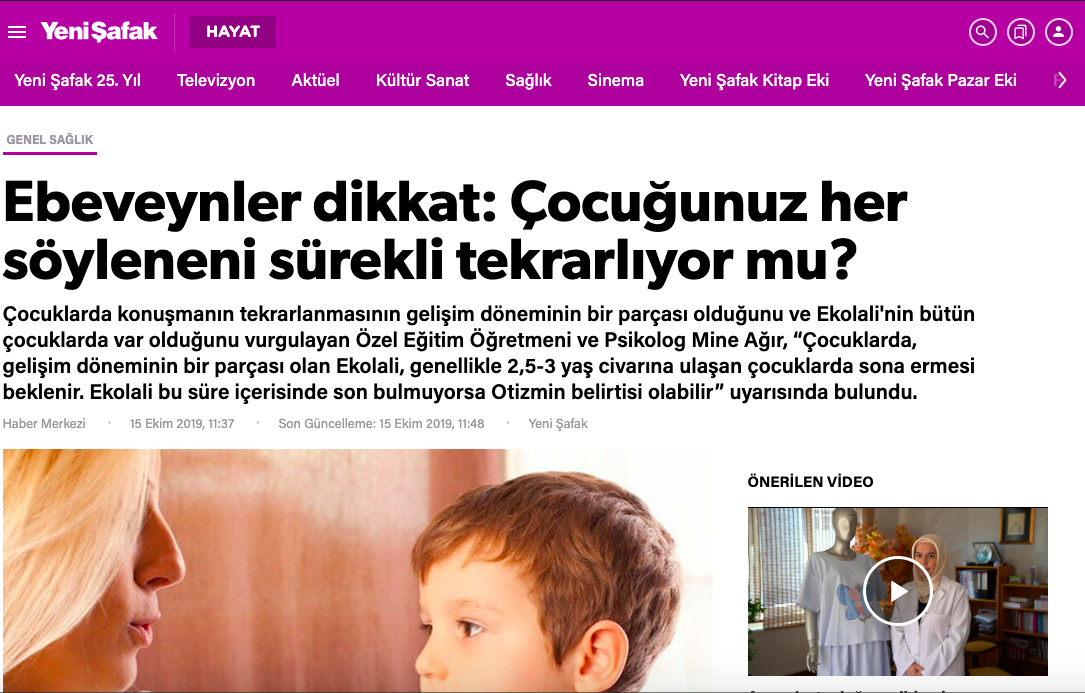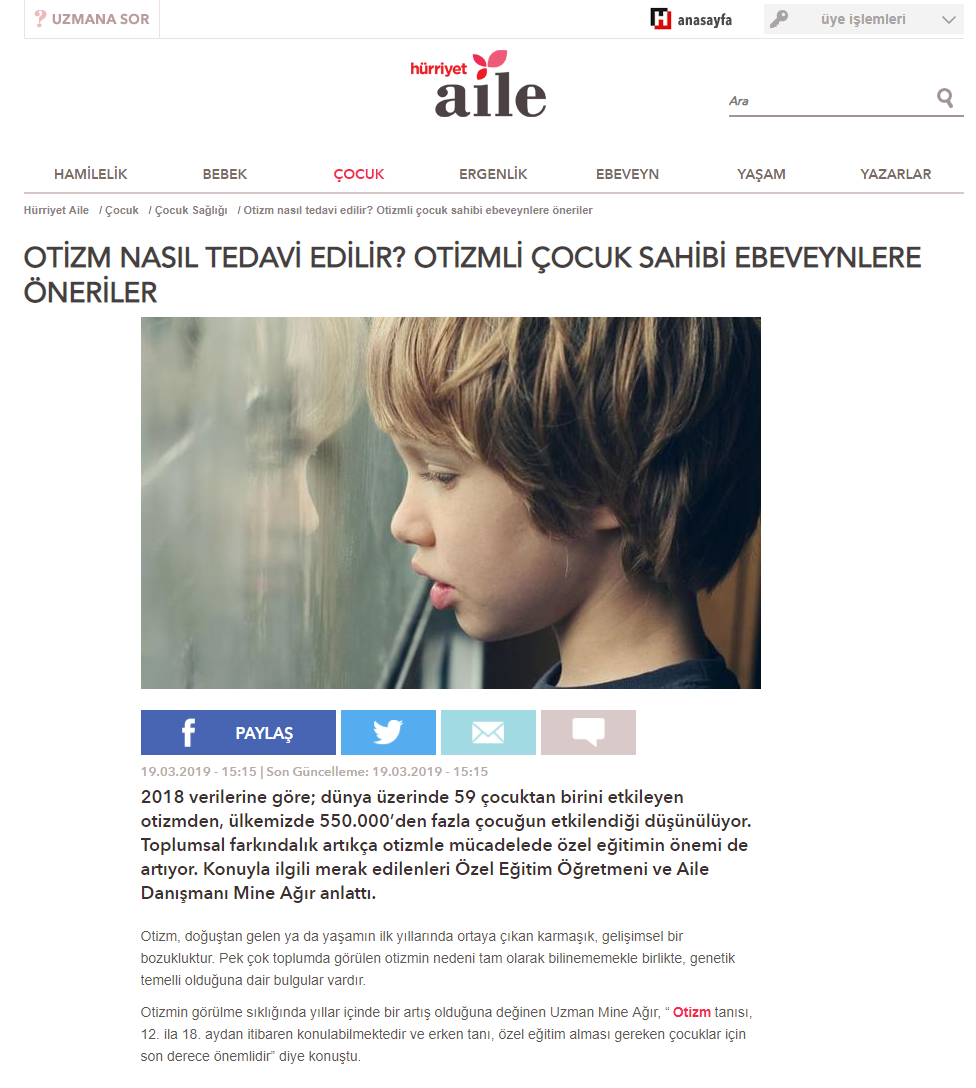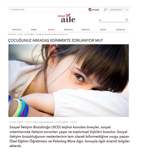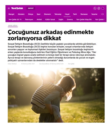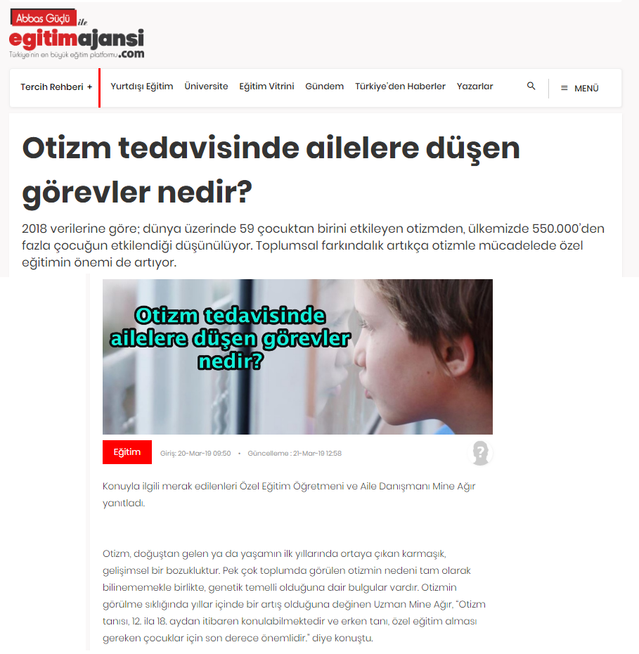 Özel Eğitim Öğretmeni ve Psikolog Mine Ağır’ın ulusal basın mecralarında yer alan tüm haberlerine bu sayfa üzerinden ulaşabilirsiniz.