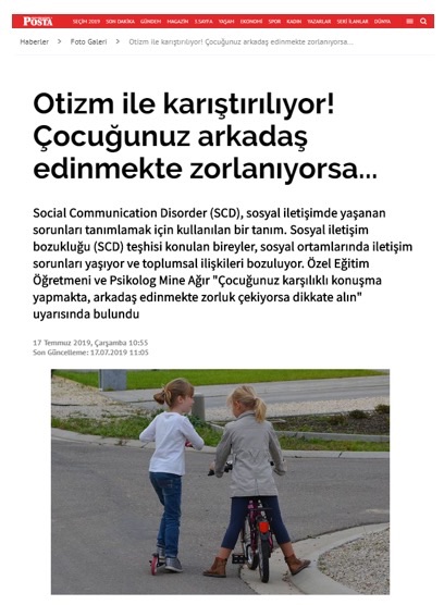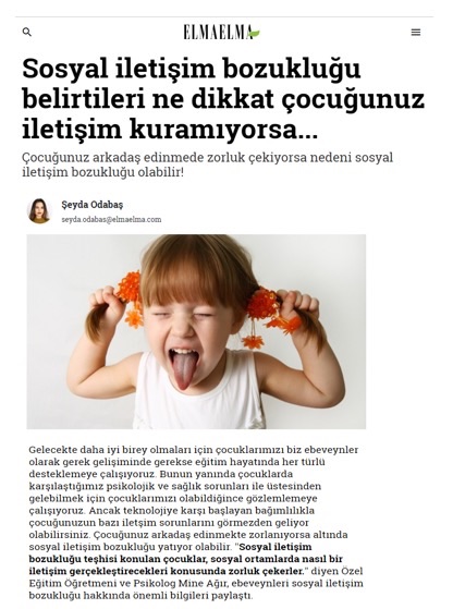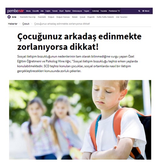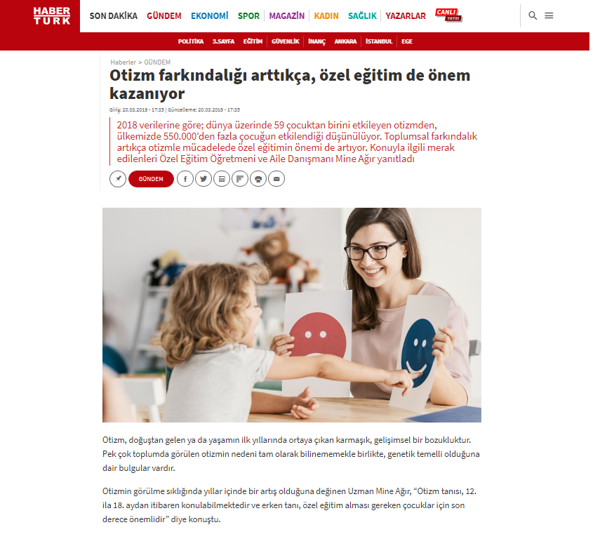 Özel Eğitim Öğretmeni ve Psikolog Mine Ağır’ın ulusal basın mecralarında yer alan tüm haberlerine bu sayfa üzerinden ulaşabilirsiniz.